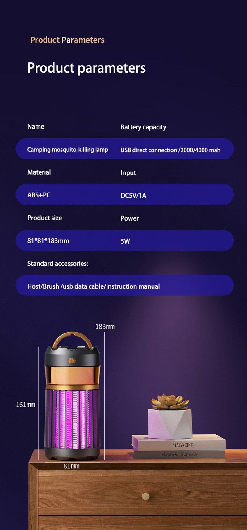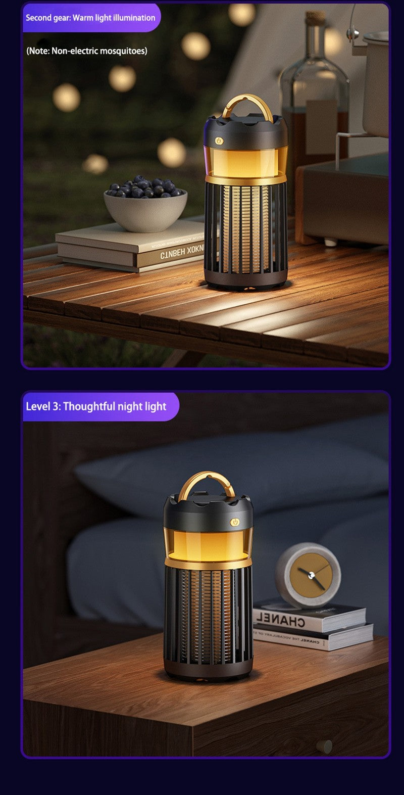 Seu design elegante e minimalista esconde uma surpresa funcional: uma luz noturna integrada. Desfrute de uma iluminação ambiente suave no seu quarto ou na barraca de acampamento, transformando este eliminador em um item essencial que combina proteção contra insetos e conforto visual em um único aparelho.